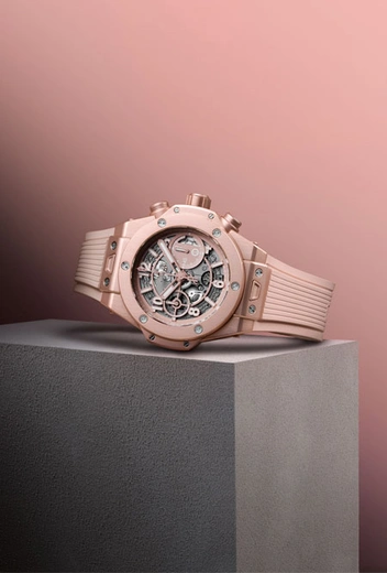 Любовь к этому цвету решил выразить швейцарский бренд Hublot, который вместе Лапо Элканном, основателем и креативным директором Garage Italia, создал новую модель Big Bang Millennial Pink. Новинка вышла лимитированным тиражом в 200 экземпляров. «Часы Big Bang Millennial Pink, который мы создали вместе с Лапо Элканном из Garage Italia, идеально вписываются в наше новаторское видение, – рассказал Рикардо Гвадалупе. – Наш опыт в области экспериментов с материалами позволил нам создать для этих часов уникальный цвет – Millennial Pink, символизирующий мир в его постоянном движении». Создание корпуса с такими характеристиками стало возможным благодаря исследованиям, проведенным инженерами Hublot. Этот процесс не только помогает добиться необходимого оттенка корпуса, но и наделяет его исключительной стойкостью к царапинам и ударам.