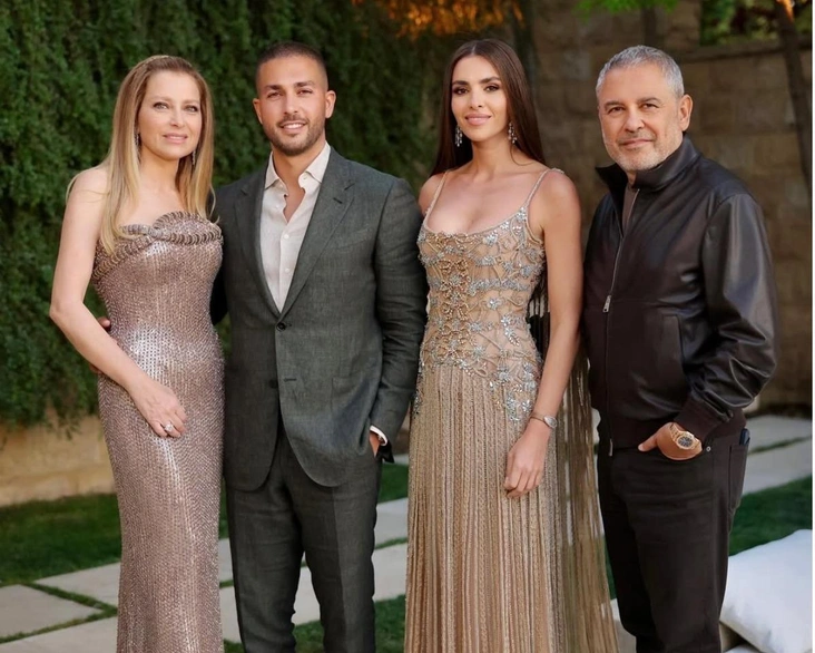 Молодожены обменялись клятвами вечной любви во время религиозной церемонии, состоявшейся в церкви Бкерки. После этого гости отправились на роскошный свадебный банкет в эксклюзивном клубе Faqra Club, где пара владеет частной резиденцией. Там же завершилось торжество после нескольких дней празднования, начавшихся в четверг 17 июля с предсвадебной вечеринки. Гости наслаждались невероятным десятиярусным свадебным тортом и любовались красиво украшенными столами, приглушенно освещенными свечами. Это место имеет особое значение для семьи, ведь именно там они провели большую часть своего детства и юности. Вечер прошел на открытом воздухе, на высоте 1500 метров над уровнем моря, откуда открывался захватывающий вид на горы и Средиземное море.