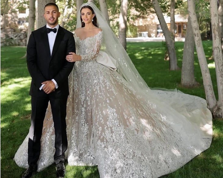 Это была любовь с первого взгляда. Пара познакомилась в июне 2021 года в Дубае и сразу почувствовала взаимную симпатию, положив начало роману, который постепенно креп до их помолвки в июне 2024 года. Как она позже призналась, именно в тот особенный момент он создал для нее кольцо. Теперь же они сделали следующий шаг в своих отношениях, поженившись и отпраздновав свою любовь в идиллической обстановке Факры, живописной горной деревни, известной своими римскими руинами и захватывающими дух видами на Средиземное море (читайте также: 16 самых известных, красивых и дорогих свадебных платьев за всю историю).