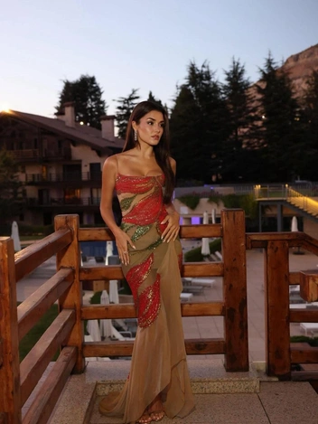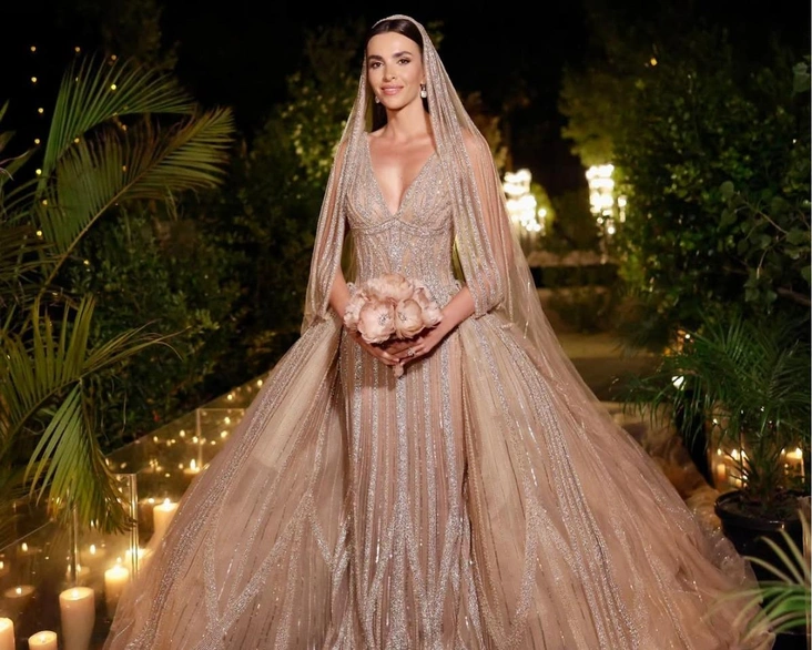 На предсвадебном вечере Зейн Кутами тоже выбрала платье, созданное Эли Саабом. Это песочное платье не только привлекло всеобщее внимание, но и отдало дань уважения семье, к которой вскоре присоединилась. Невеста Селио Сааба выбрала эксклюзивный наряд, сочетающий в себе элегантность, символизм и изысканность. (читайте также: Как выглядит отель Владислава Доронина в Венеции, в котором остановились Безос и Санчес).