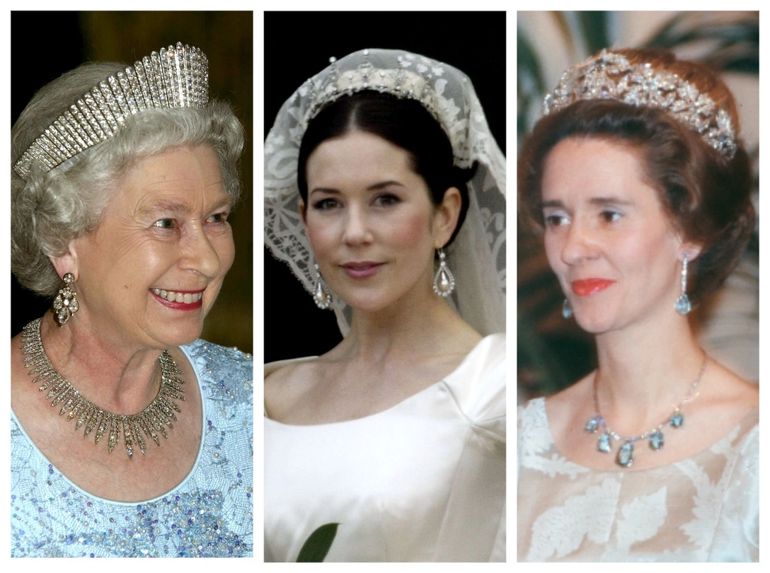 Коллекция Королевы включает свадебные диадемы, которые носили последние три королевские невесты: тиару королевы Марии, в которой венчались и сама Елизавета, и ее дочь принцесса Анна, и ее внучка принцесса Беатрис; диадему «кокошник» Гревилл, в которой под венец шла принцесса Евгения; тиару-бандо королевы Марии, украсившую голову герцогини Сассекской в день ее свадьбы с принцем Гарри. Все из этих украшений, как можно понять по их названиям, были унаследованы Елизаветой от ее бабушки по отцовской линии, Марии Текской. Та считалась одной из главных любительниц драгоценностей среди всех Виндзоров и собрала немало украшений, позже доставшихся ее потомкам.