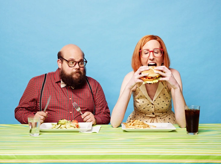 Таким образом, ученые выяснили в ходе эксперимента, что люди чувствуют себя менее мотивированными на прием здоровой пищи и едят больше, когда за одним столом с ними сидит человек с лишним весом.