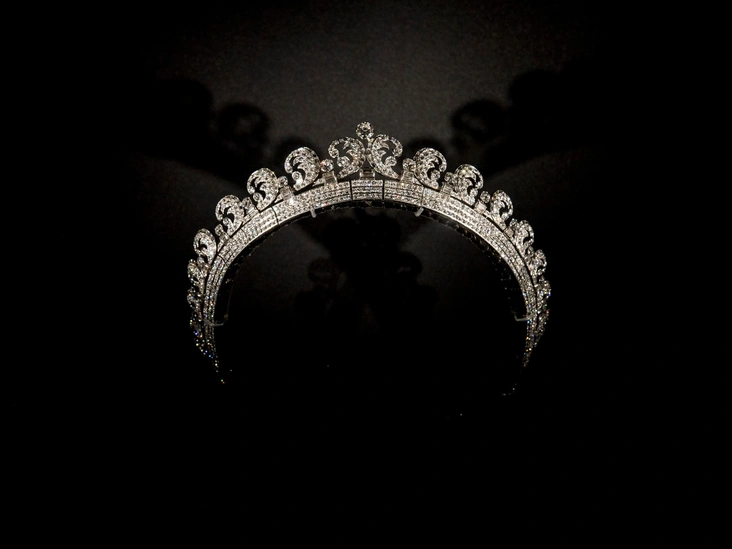 В случае будущий королевы украшение должно было быть безупречным. И 29 апреля 2011 года Кейт предстала перед публикой в аккуратной тиаре Cartier, известной под названием «Ореол» или «Нимб», на английском — Halo Scroll. Ее оценивают в 1,27 миллиона фунтов стерлингов, и стоимость обусловлена не только драгоценными материалами, но и исторической значимостью украшения.