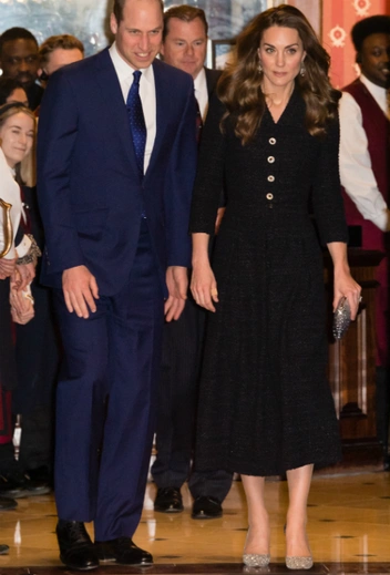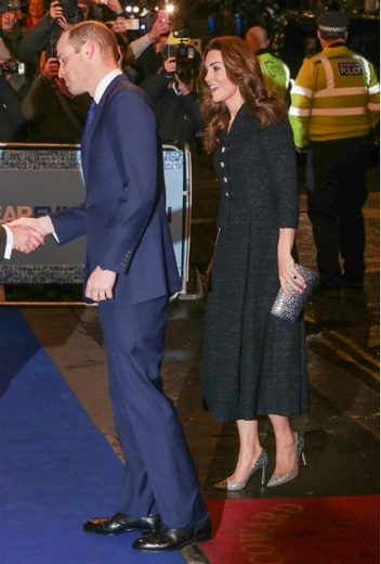 Приталенное твидовое платье длины миди, в котором Кейт отправилась на благотворительный показ мюзикла, было дополнено клатчем на твердом каркасе и остроносыми лодочками, усыпанными стразами. Модные обозреватели заявляют, что выбранную пару сережек герцогиня Кембриджская надевает не в первый раз. Первый такой выход состоялся в 2011 году. Тогда серьги дополнили платье Alexander McQueen, выбранное Кэтрин для церемонии вручения наград Британской академии кинематографического и телевизионного искусства BAFTA. Герцогиня вновь надела украшения в 2017 и 2018 году.