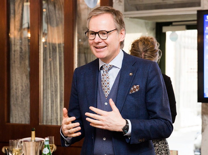 Гостей встречала Наталия Боброва (Ars Vitae) и главные отельеры Oetker ─ Франк Марренбах (CEO Oetker Collection) и Дуарте Бон де Суза, генеральный директор двух отелей (зимой он управляет L’Apogee в Куршевеле, а летом — Chateau Saint-Martin & SPA в Вансе).