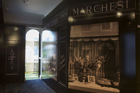 Рядом с выставочным залом временно разместили миланскую кондитерскую Marchesi, которая известна на весь мир широким ассортиментом выпечки и конфет. При ее создании была сохранена оригинальная архитектура и дизайн 1824 года.