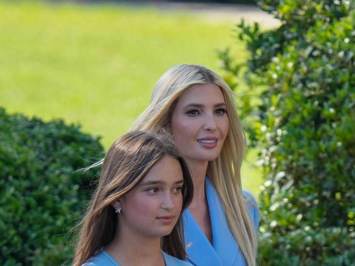 Арабелла была одета точно под стать своей матери. Девочка надела мини-платье с плиссированной юбкой, которое идеально подходило по оттенку к костюму Иванки. К слову, это не первый раз, когда мама и дочка выбирают похожие голубые наряды. Этот же прием они использовали на свадьбе Тиффани Трамп в 2022-м.