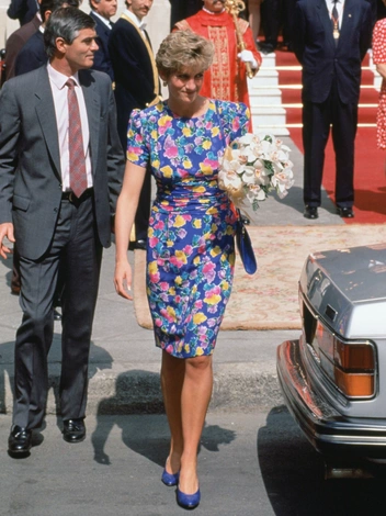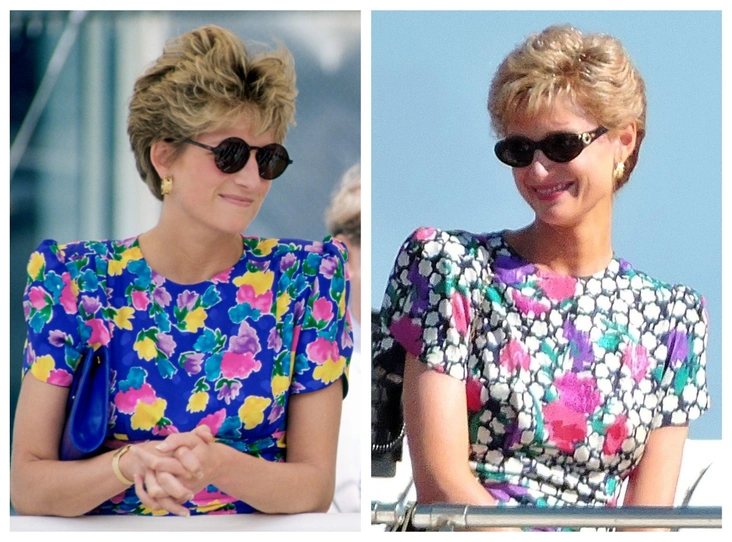 Этот предмет гардероба принцесса Уэльская, судя по всему, очень любила: она появлялась в синем платье с цветочным принтом летом 1998 года, болея за мужа на матче по поло в Виндзоре; в августе 1989-го, отмечая день рождения королевы-матери в Кларенс-Хаусе; весной 1990 года, во время визита в Нигерию; и в мае 1992-го, посещая Севилью. Авторство платья принадлежит Bellville Sassoon — марке, которая когда-то отказала обслуживать избранницу будущего короля (читайте также: Конфуз будущей принцессы: почему Диану попросили покинуть магазин одежды).