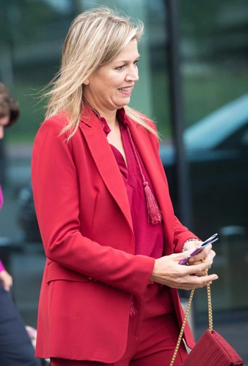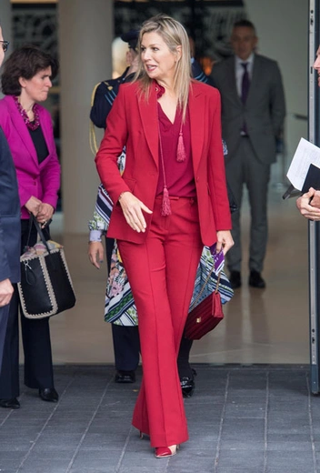 В понедельник королева-консорт Нидерландов выступила в качестве председателя 5-го Глобального финансового форума по МСП, который проходил в голландском Схипхоле. На форум 48-летняя Максима прибыла в идеально подогнанном по фигуре красном брючном костюме от голландского модельера Claes Iversen. Дополняли образ малиновая блузка (также от Claes Iversen) с кистями в этническом стиле, сумочка малинового цвета и туфли Gianvito Rossi на шпильке с красным мыском (читайте также: Марсала, сангрия, марон: как королевские особы носят винные оттенки).