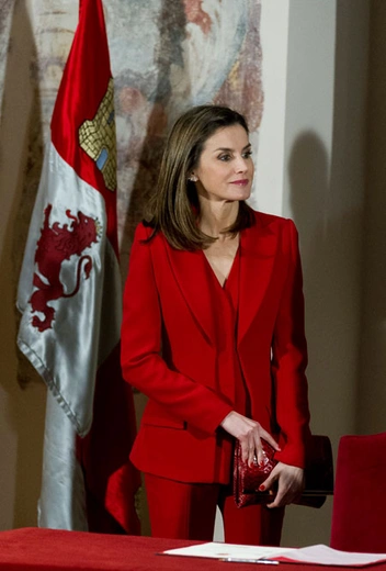 Как отмечают испанские модные обозреватели, вполне возможно, Максиму вдохновил образ королевы Летиции, которая считается главной поклонницей моделей красного цвета европейских монархов. В костюме такого же фасона и цвета от испанского модельера Roberto Torretta Донья Летиция появилась на одном из мероприятий в марте 2018 года. С тех пор супруга испанского короля выбирала этот костюм для ряда публичных выходов, дополняя его различными аксессуарами (читайте также: Как Меган Маркл копирует стиль кронпринцессы Мэри (возможно, неосознанно)).