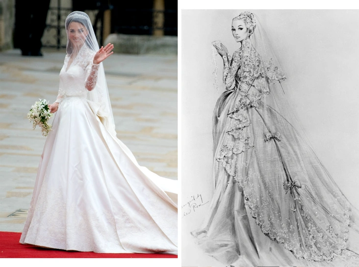 Готовясь к королевской свадьбе Кейт Миддлтон не могла не ознакомиться с самыми впечатляющими экземплярами подвенечных платьев титулованных особ. Одним из самых известных считается свадебный туалет Грейс Келли — голливудской звезды, связавшей свою жизнь князем Монако Ренье III. Недавно на канале Channel 5 вышел документальный фильм «Грейс Келли: голливудская принцесса», подтверждающий, что его героиня стала основным источником вдохновения при разработке образа невесты принца Уильяма.