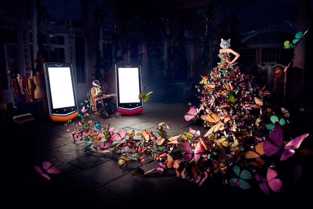 Рекламную кампанию снимал фотограф Кристиан Шуллер (Kristian Schuller). Ранее он работал со Swatch и Harrods. Концепция рекламы – показать, какой удивительный мир создает компания Vertu для своих клиентов. На снимках люди с головами лошади, оленя, кошки танцуют, играют на фортепиано или пьют чай.
