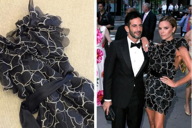 Далее Виктория Бекхэм продолжила доставать знаменательные вещи из шкафа: она продемонстрировала подписчикам черное асимметричное стрейчевое платье, которое носила, когда была беременна Бруклином, и воздушный черно-белый наряд, состоящий из тончайших сердечек, в котором она позировала рядом с Марком Джейкобсом (Marc Jacobs).
