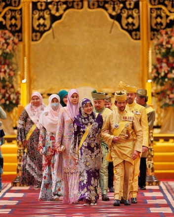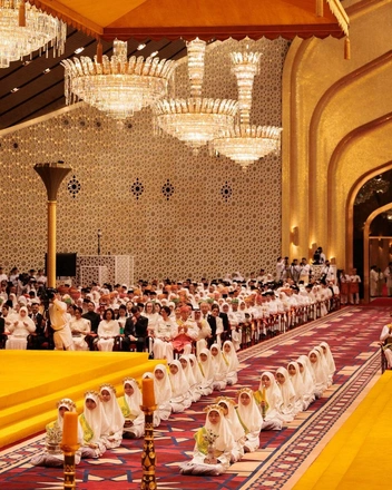 Сообщение о том, что свадьба принца будет 10-дневной, стало потрясением для многих — ведь даже самые известные европейские монархии справляются за пару дней. Но тут надо учесть множество религиозных церемоний, без которых жених и невеста из брунейской семьи не имеют права заключать брак. Одна из таких — Хатам Аль Корана — прошла 7 января. Она предназначена только для невесты: Аниша Росна несколько дней подряд от начала и до конца читала Коран в людном зале. Считается, что только так союз пары будет счастливым.