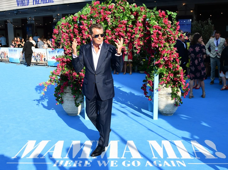 Пирс Броснан, сыгравший супруга Донны, появился в идеально сидящем темно-синем костюме и белоснежной рубашке, причем пуговиц у воротничка звезды было расстегнуто больше, чем обычно позволяют себе джентльмены на светских мероприятиях. И даже при этом Броснан оказался в тени своей супруги Кили Шэй Смит.