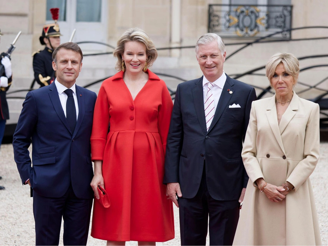 Перед началом приема в Президентском дворце король и королева Бельгии позировали перед папарацци на красной дорожке. Королева Матильда предпочла красный во всем: от своего наряда до клатча и туфель, в то время как бельгийский король Филипп гармонично смотрелся рядом с женой в черном классическом костюме.