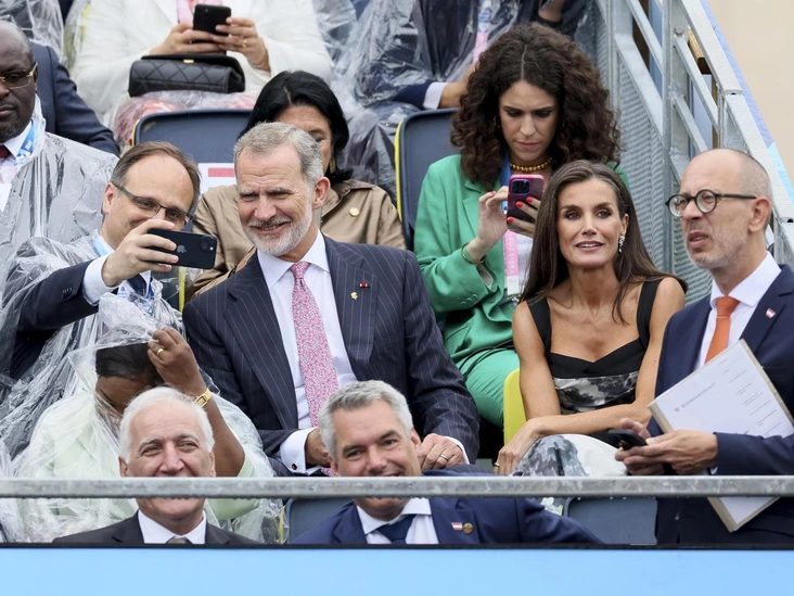 Пока королева Испании Летиция, выглядевшая неизменно хорошо, наблюдала за соревнованиями, ее муж король Филипп VI позировал на Олимпиаде для селфи. Вскоре начался дождь, и супруги были вынуждены надеть дождевики, однако их оптимистичный настрой внезапно мрачная погода никак не испортила.