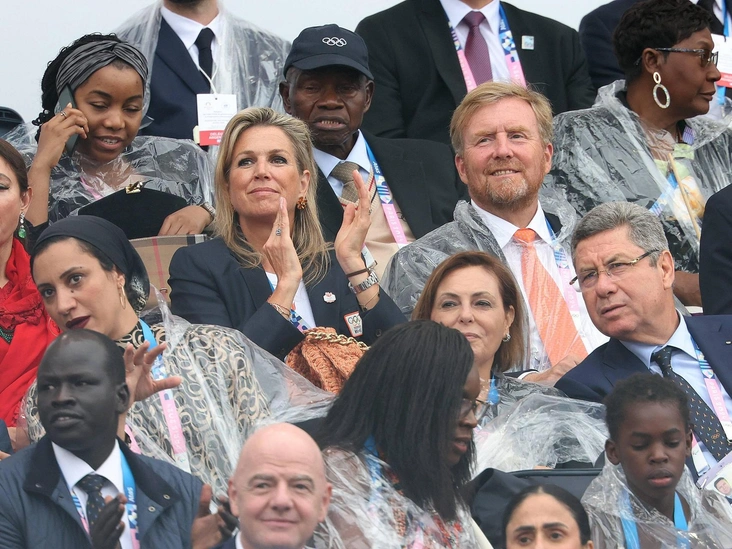 Король Нидерландов Виллем-Александр, бывший член МОК, и королева-консорт Максима на церемонии открытия Олимпийских игр слегка затерялись в толпе, но позже встали, чтобы помахать публике и поприветствовать собравшихся.