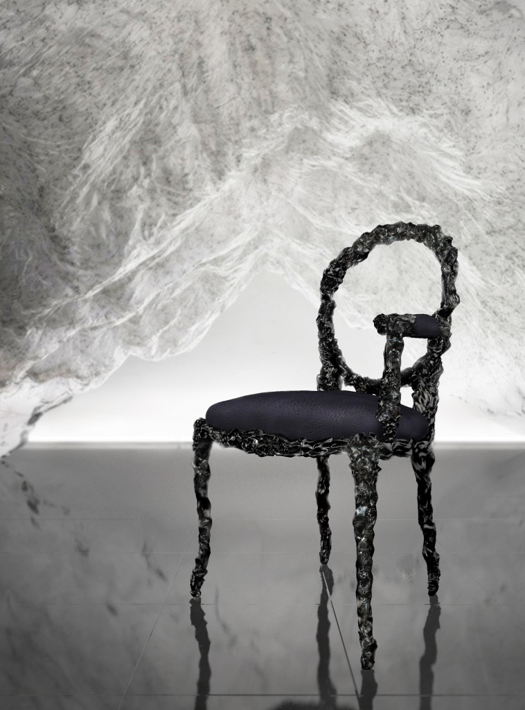 Вдохновение – вещь непредсказуемая. Вот и в этот раз муза к дизайнеру, ставшему лучшим в Сеуле в 2010 году в сфере промышленного дизайна, Ли Сихану (Lee Sehoon) пришла в виде расплавленных виниловых пластинок. Мебельный сет под названием «Анитья» вдохновлен динамикой современной жизни. «Текстурная поверхность, появляющаяся под действием высокой температуры, сосредотачивает в себе энергию мироздания, которую я пытаюсь передать в своих работах, – говорит Ли. – Каждый элемент создан согласно одной и той же технологии, но при этом каждый из них обладает собственной индивидуальностью: цветом, формой, текстурой». Мебель выполнена в черно-серой гамме – новая готика, не правда ли?