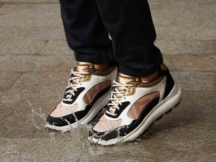 Самая удобная обувь, кроссовки, остаются в тренде уже не первый год. Модницам так понравилось, что ради стиля и трендов не приходится отказываться от комфорта, что они сочетают кроссовки буквально с любым образом. В новой коллекции Geox можно найти пару на любой вкус. Здесь и классические белые и бежевые кроссовки, так и модели с черными вставками или деталями с эффектом металлик.