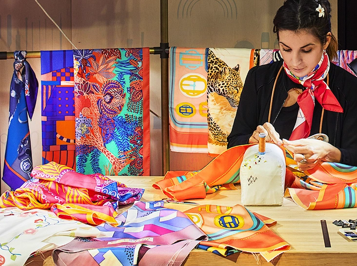 Платки Hermès рассказывают самые разные истории: историю дома Hermès и историю своего создания, историю художника-автора, сезона, мотива, мастерства. Узнайте все об истории знаменитого платка: от подготовки материала до от творчества художника, придумавшего рисунок.