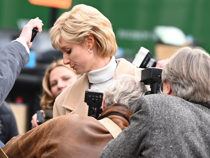 Недавно в Барселоне завершились съемки сцен, воссоздающих смерть принцессы Дианы в Париже в 1997 году. По этой причине несколько улиц испанского города были украшены плакатами на французском языке, и местные жители наблюдали за автомобилями 1990-х на дороге. Кадры, сделанные папарацци, тут же облетели весь мир. На них исполнительница роли Уэльской была в светло-сером брючном костюме и топе, повторяющих последний образ принцессы.