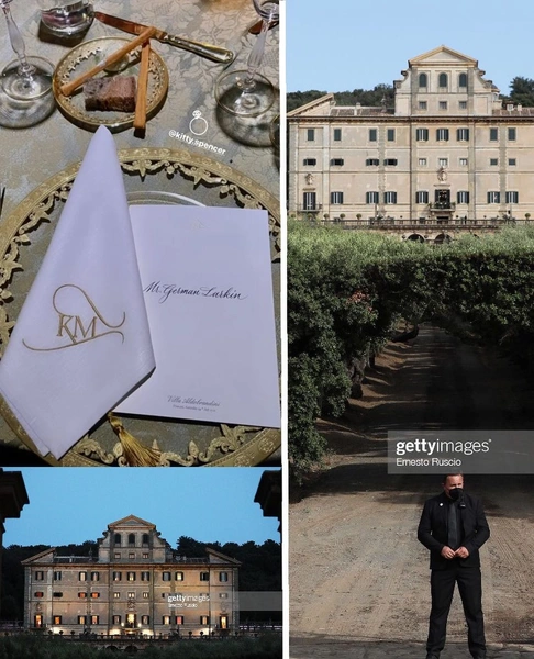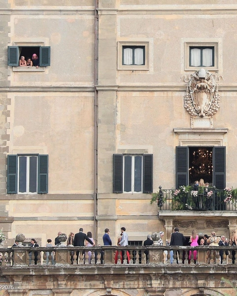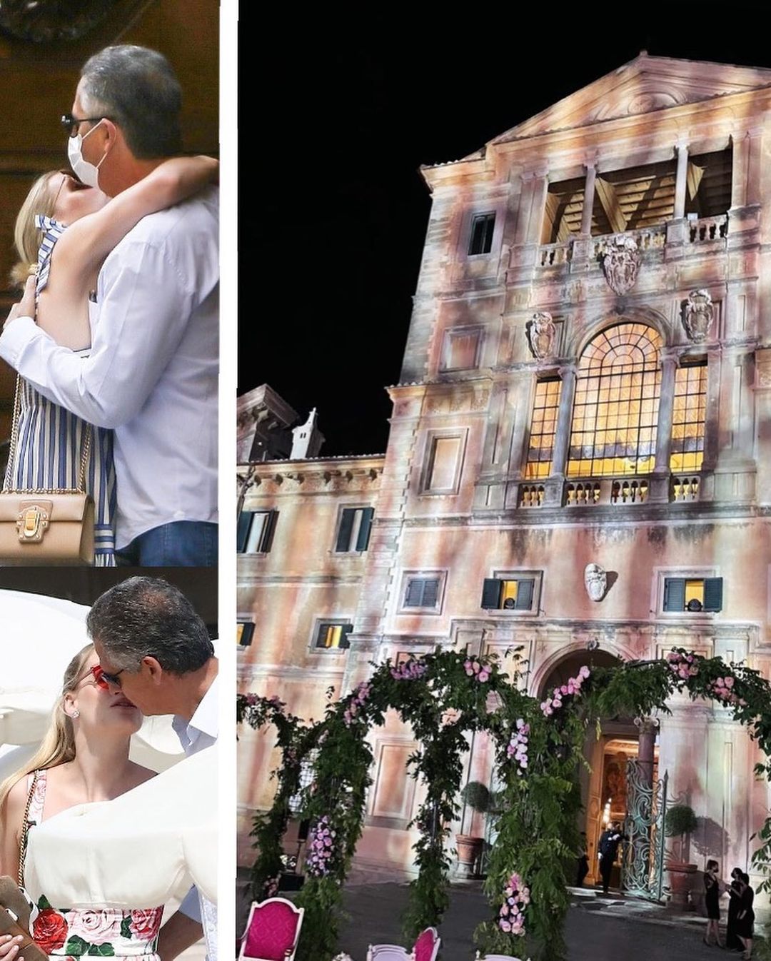 Празднование началось еще в пятницу, на предсвадебном ужине в кругу близких друзей, который прошел в Galleria Del Cardinale — роскошном банкетом зале в стиле барокко.