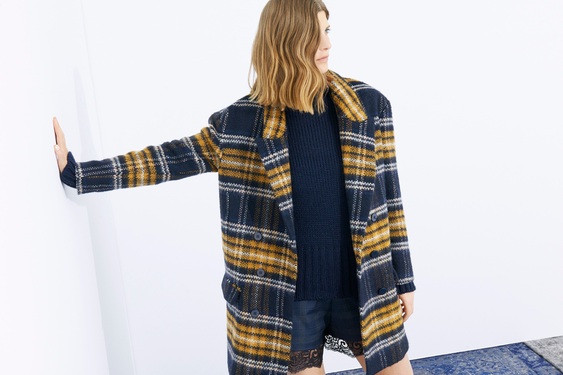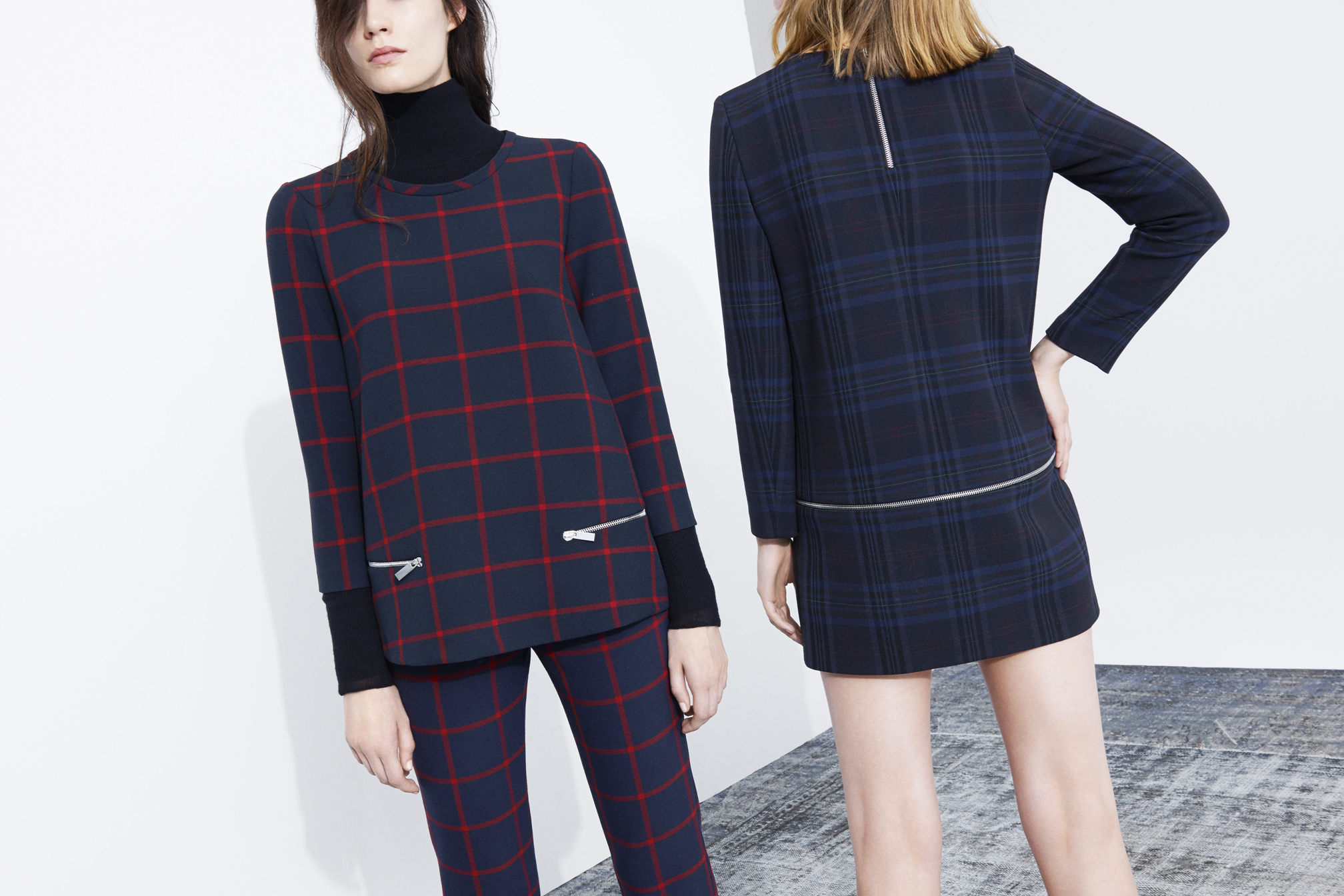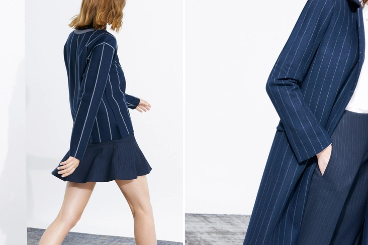 В новой коллекции можно найти строгие пальто А-силуэта, а также модные в этом сезоне объемные пальто в мужском стиле цвета camel. В изобилии костюмные паттерны: здесь и "двойки" в духе 60-х годов в крупную клетку, и школьные юбки в тонкую серую полоску. Кстати, для съемок и лукбука Zara пригласила звезду модной фотографии - Патрика Демаршелье (Patrick Demarchelier).