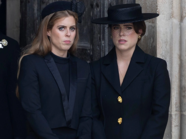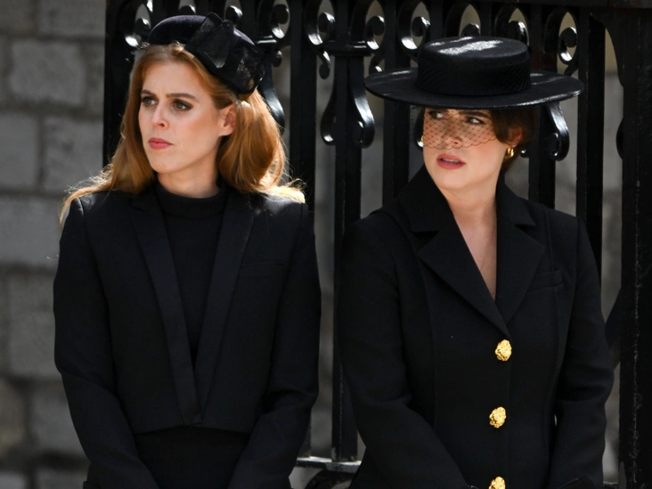 Тобиас отметил, что принцесса Беатрис не надела никаких украшений, видимых посторонним взглядом, сделав единственным акцентом образа компактную шляпку-таблетку с лаконичным бантом, а ее сестра принцесса Евгения надела золотые серьги-кольца, перекликавшиеся с крупными металлическими пуговицами на ее пальто, ставшими доминантой всего образа Ее Высочества, и металлической фурнитурой ее сумочки. «Это было несмотря на то, что большинство королевских женщин носили жемчуг», — отметил Корминд. Зато Евгения соблюла другую традицию и, в отличие от своей старшей сестры, надела шляпку с черной вуалью.