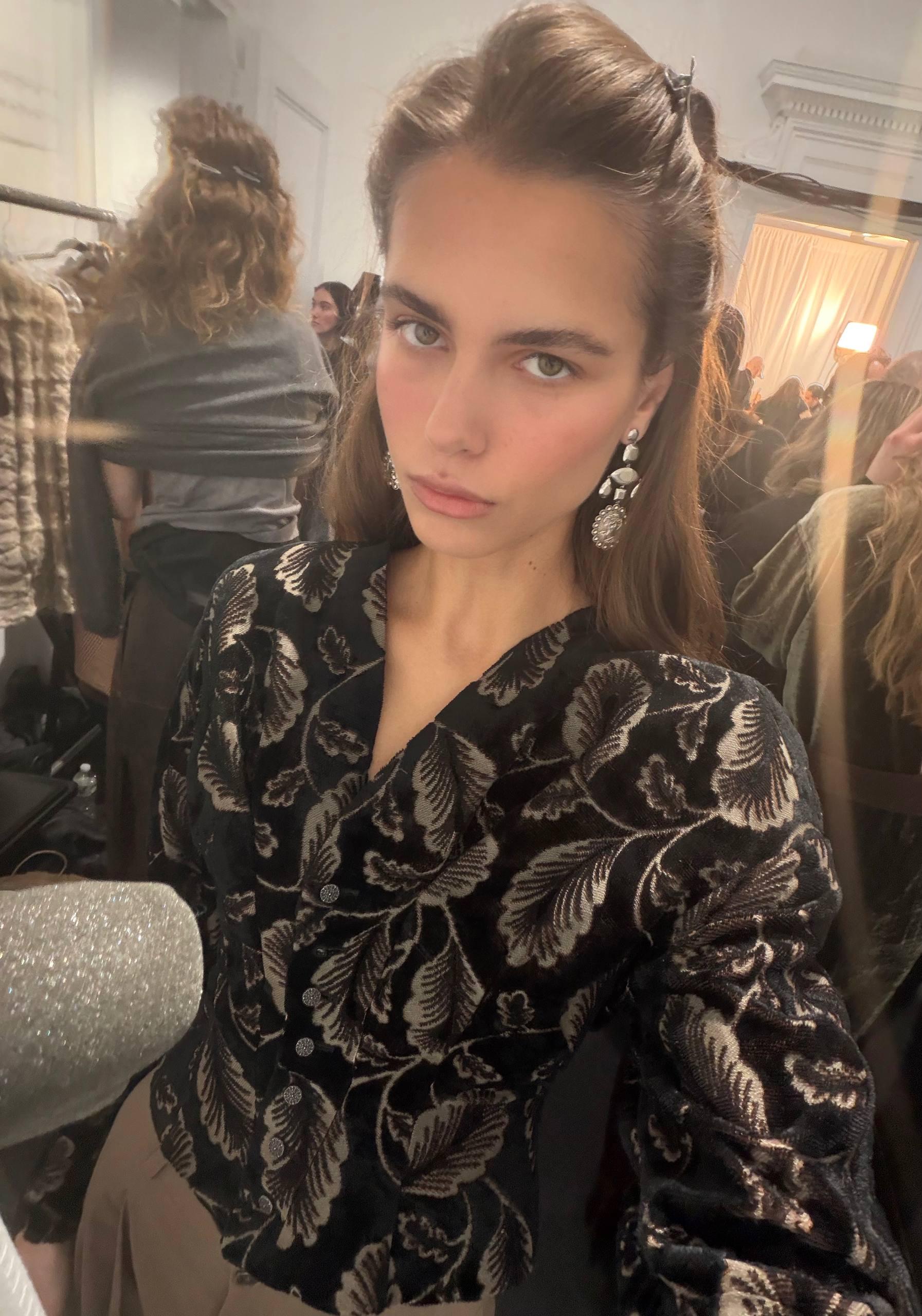 Вскоре после выхода на подиум она опубликовала фотографии с бэкстейджа в своих социальных сетях. На них можно подробнее рассмотреть одежду Дома и заглянуть в закулисье моделинга — увидеть моменты из подготовки показа (читайте также: Дневник модели с Недели моды: как прошел день Дарьи Золотовой на показе Off-White в Париже).