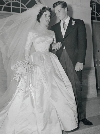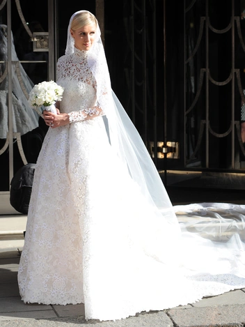 Кстати, очень похожее платье было и на Элизабет Тейлор на ее первой свадьбе (читайте также: Привычка жениться: 8 свадебных платьев и 7 мужей Элизабет Тейлор). Актриса вышла замуж за Конрада Хилтона — наследника знаменитой гостиничной сети и будущего деда Пэрис и Ники — в 1950-м году, то есть раньше венчания ее коллеги Грейс и князя Монако, но общие черты их в платьях объясняются просто: авторство принадлежит той же художнице по костюмам Хелен Роуз. Любопытно, что через много лет Никки пошла к алтарю в ансамбле в том же стиле.