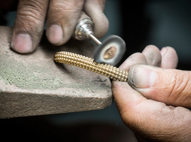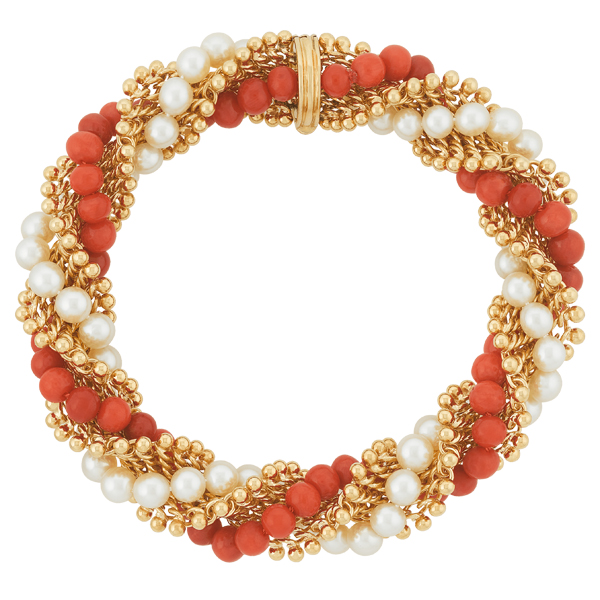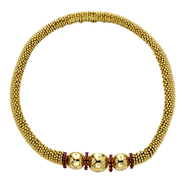 Коллекция Perlée существует уже почти десять лет, однако ее культовый декоративный элемент – сияющая золотая бусина – олицетворяет эстетику Дома уже более 90 лет – с 1920-х годов. Именно тогда мастера Van Cleef & Arpels впервые стали использовать нити из золотых гранул для обрамления драгоценных камней и окантовки орнаментов. Позднее – с 1948 года – Дом начинает представлять такие шедевры ювелирного искусства, в которых золотые сферы становятся солирующим декоративным элементом – и это производит настоящую революцию в эстетике Van Cleef & Arpels. От ярких украшений с бриллиантами и рубинами из коллекции Couscous, вдохновленной путешествием семьи Арпельс по Марокко, до объемного монохромного браслета Gold Balls (который можно было бы посчитать прародителем браслета 2017 года) – отныне «золотые жемчужины» стали визитной карточкой легендарного Дома на Вандомской площади, символизирующей его озорной дух.