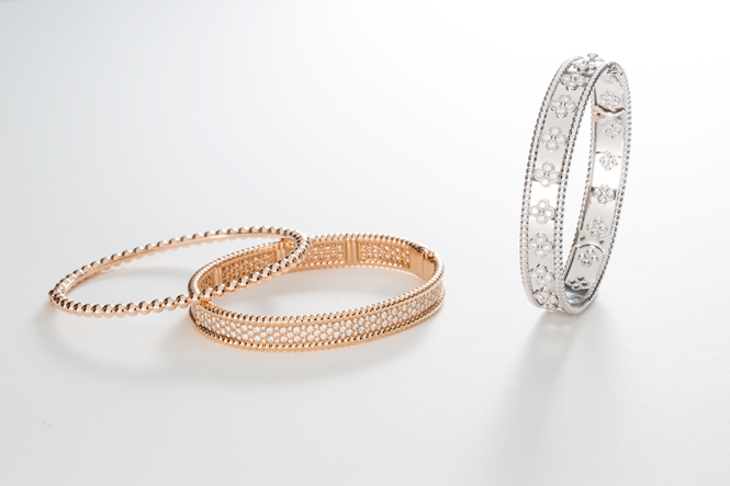 Коллекция блистает как лаконичными украшениями (Perlée pearls of gold), так и сетами с яркими поделочными камнями (Perlée couleurs), с чистейшими бриллиантами (Perlée diamonds), с фирменными арабесками (Perlée signature) и с изображениями клевера – символа удачи (Perlée clovers). Все эти украшения великолепно сочетаются между собой и создают настоящий простор для экспериментов.