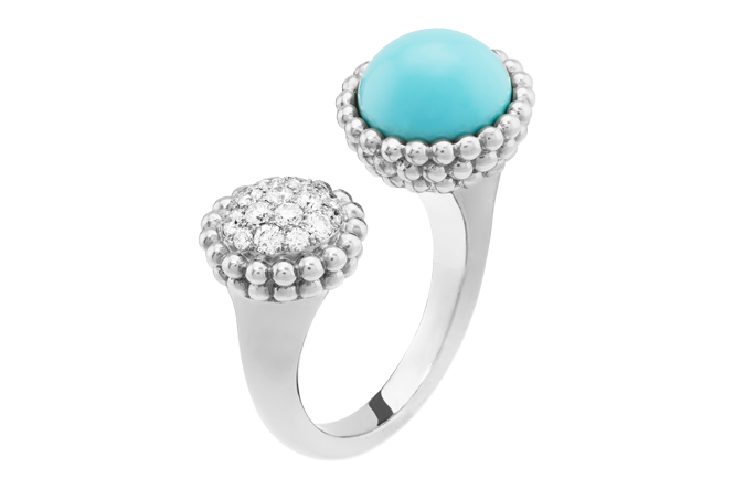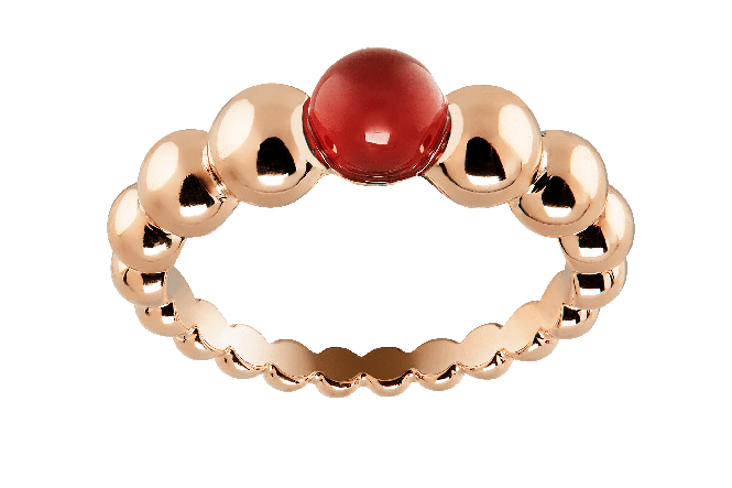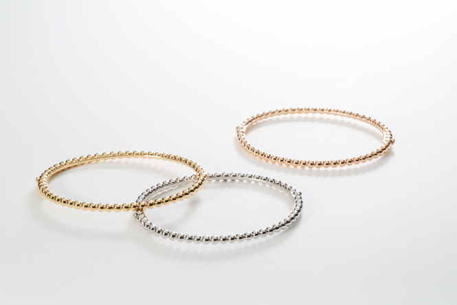 Три и пять рядов идеально отполированных вручную бусин расположены в кольце и браслете так, чтобы игриво отразить свет и мягкое бархатистое сияние золота высшей пробы. В новом сете ювелиры Van Cleef & Arpels воспевают торжество трехмерных форм и плавных линий, каждый изгиб которых сопровождается радостным драгоценным блеском.