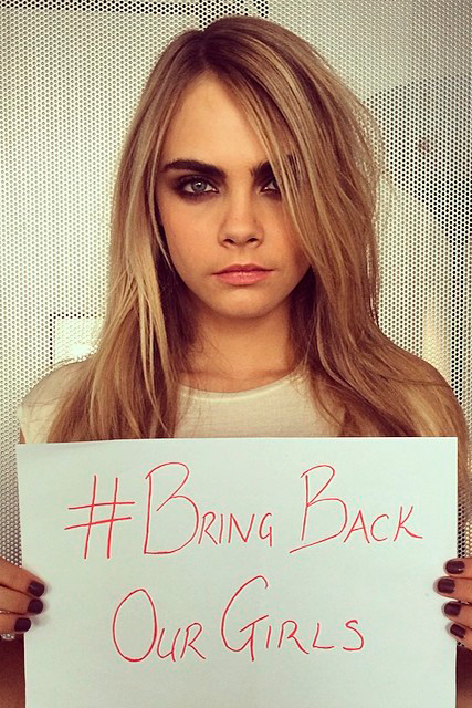 В Интернете началась массовая кампания по привлечению внимания к этой трагедии: люди делают в Twitter записи с фото и хэштэгом #BringBackOurGirls («Верните наших девочек»), а некоторые знаменитости, как Энн Хэтэуэй и ее муж Адам Шульман, вышли на митинг в Лос-Анджелесе. К кампании уже присоединились Анджелина Джоли, Джессика Билл, Эмма Уотсон, Алиша Кис, Леона Льюис, Кара Делевинь и многие другие.